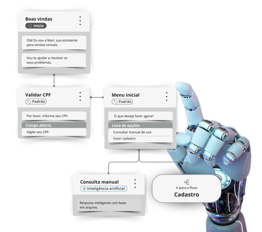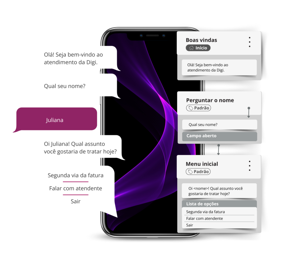 O chatbot auxilia seus clientes a realizarem autoatendimento, aliviando a carga da central, ao proporcionar respostas instantâneas sem intervenção humana!